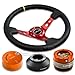 NRG-SRK-105H+200OR+101OR+006RDY, NRG Innovations 13.78" 350mm 3" Deep Dish Style Black Leather Yellow Center Marking Red Spokes Racing Steering Wheel Combo with 6 Hole Short Hub Adapter with Gen 2.0 Orange Quick Release with Orange Lock Hub Kit SRK-105H